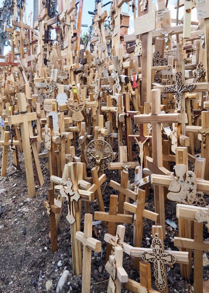 Wir haben nicht viele interessante/bekannte Punkte auf unserem heutigen Weg durchfahren. Einen haben wir aber bewusst angefahren. Den Berg der Kreuze bei Šiauliai. Schon im Mittelalter bekannt, werden hier Kreuze von Pilgern aufgestellt verbunden mit einem Wunsch oder Dank. In den 70er wurde der Hügel mehrfach von den Kommunisten geräumt, die Aktion blieb aber erfolglos und der Hügel wurde Zeichen des nationalen Widerstandes. In den 90er haben Studenten bei einer Zählung der Kreuze bei 50.000 aufgegeben.