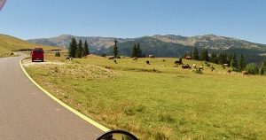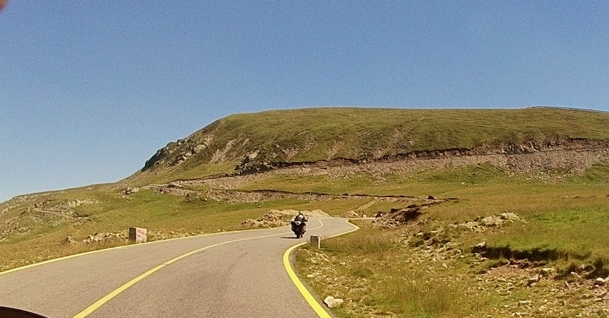 Und dann kam sie, die Tansalpina. Wunderschöne Landschaft mit genialen Kurvenfolgen. Wir hatten Glück, wenig Verkehr gepaart mit Superwetter. Gut das es so heiss war, dort oben war es genau richtig. Kurz hinter dem Gipfel haben wir eine sehr schöne Stelle nur für uns gefunden und haben ein ausgiebige Mittagspause mitten im Nichts gemacht. Genial!