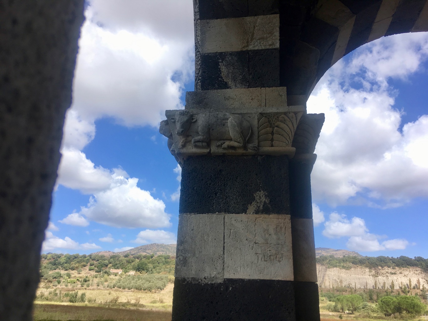 Auf unseren Weg liegt die Santissima Trinità di Saccargia. Eine Kirche aus dem 12 Jahrhundert, die zu einem alten Kloster gehört. Sie liegt mitten im Nichts. Keine Stadt, kein Dorf in der Nähe. Nur die Kirche und die Reste von dem Kloster. Der Legende nach kniete hier eine Kuh zum Gebet nieder. Hmmm …