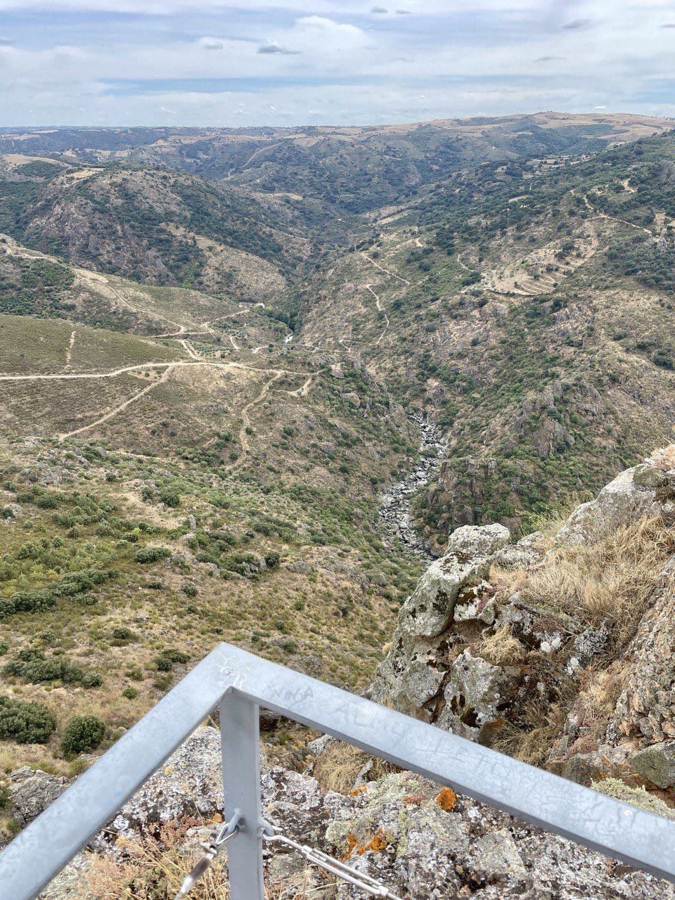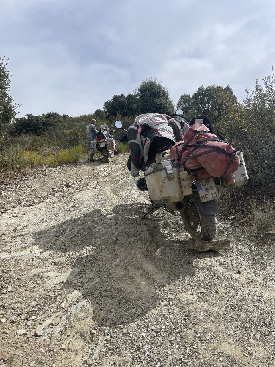 Eine Menge Staub gab es, man muss ordentlich Platz zum vorausfahrenden lassen. Einige Passagen waren mit dem ganzen Gepäck schon sehr herausfordernd, lose grosse Steine, enge Kehren, Sandlöcher und steile Anstiege. Wir sind nur ca. 30km der Strecke gefolgt und haben dann Pause gemacht. Mal sehen wie wir es die nächsten Tage handhaben. Heute haben wir nach der Pause noch eine naheliegende Burg angeschaut und sind dann über geteerte Strasse zum nächsten Campingplatz gefahren und haben lecker gekocht. Portugiesisches Gulasch mit Bohnen.