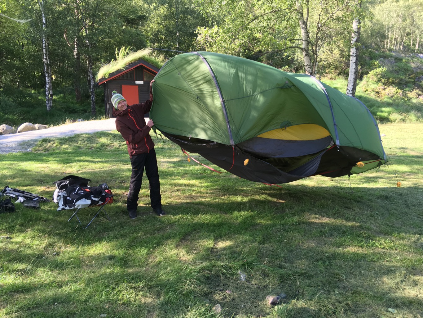 Am Ende des Tages haben wir versucht einen Platz zum Zelten zu finden. Der erste Platz war dann ein offizieller Campingplatz, sehr schön an einem See gelegen und wir waren die einzigen Gäste. Auf dem Campingplatz gab es ausser dem See noch eine gemähte Wiese und ein Plumpsklo. Aber es ist wieder ein wunderschöner Campingplatz. Leider dermassen windig, das wir uns mit dem Tarp einen Windschutz bauen mussten.